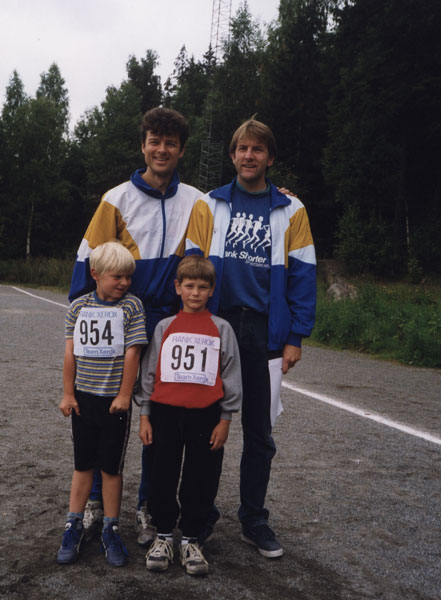 Lars Hansen (til høyre) sammen med Trond Olav Berg og deres sønner Simon Hansen og Haakon Engelsen Berg, fotografert under Bøler barneleker i 1998. Lars og Trond Olav vokste opp i Utmarkveien, og gikk i samme klasse helt fra grunnskole til videregående skole. Begge har vært faste innslag på Bølers mange sterke lag i Holmenkollstafetten, der de har vekslet med hverandre en rekke ganger.