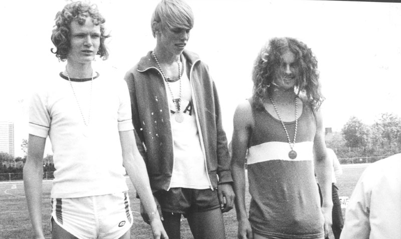 Terje Hoffmann til venstre sammen med to for oss ukjente konkurrenter, alle med tidstypisk hårfrisyre for tidlig 1970-tall.