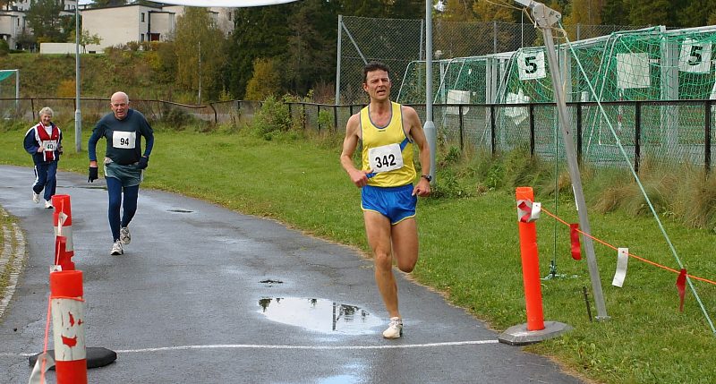 Trond Olav Berg var aller raskest på årets ti-kilometer. Her slår han som vi ser nummer 94 i spurten etter en stor kraftinnsats.