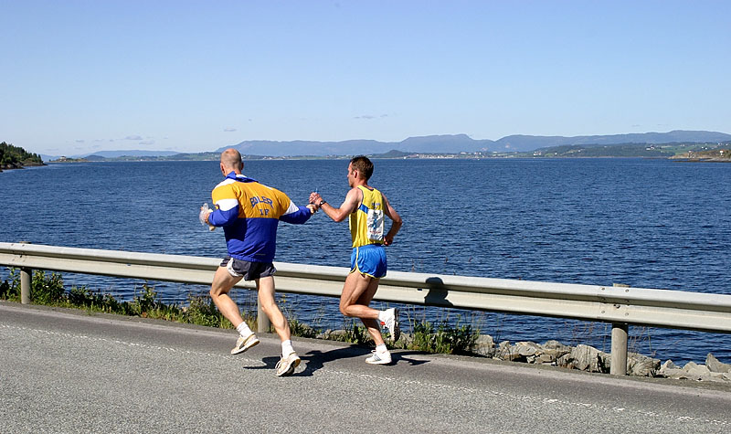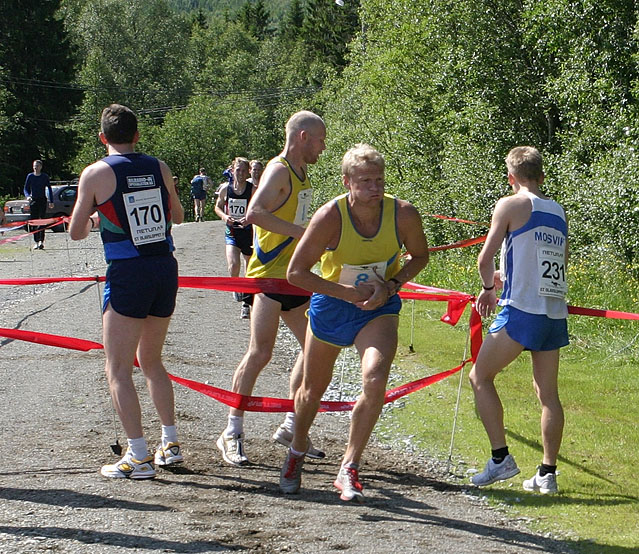 helt til de siste tre hundre metrene fra vekslingen. Da fant Leif ut at
