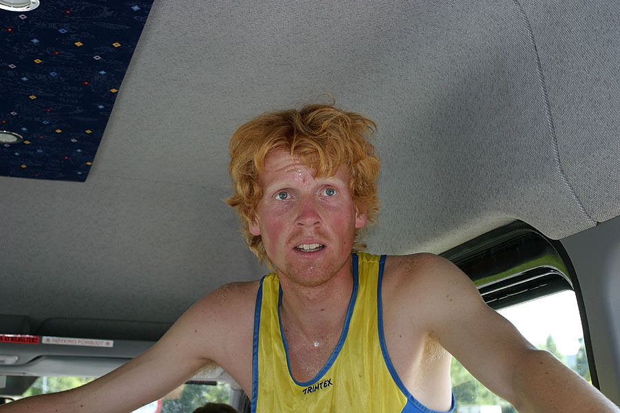 sto stilt opp bak startstreken den syvende juli 2004, nervøst