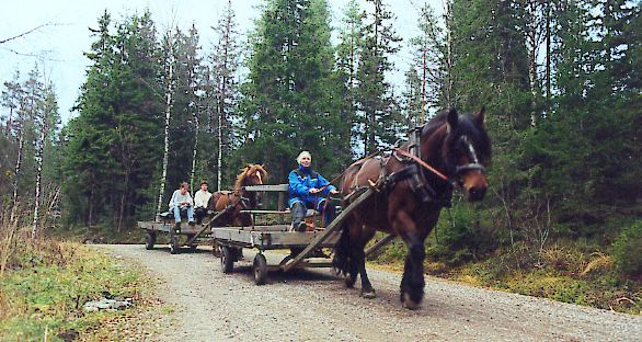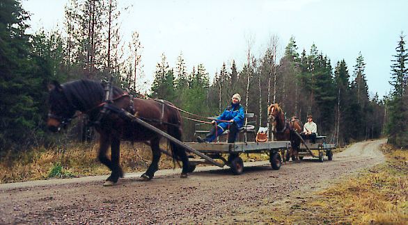 Slik ser det ut når unge mennesker tar opp eldgamle tradisjoner, og kjører med hest og kjerre slik deres forfedre og -mødre gjorde for mange århundrer tilbake. Bildene er tatt i oktober 1999.