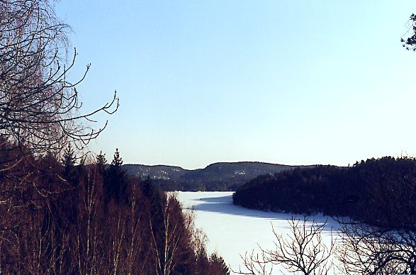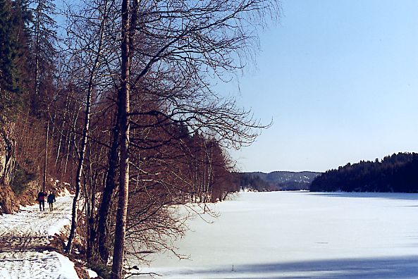 Slik så Nøklevannet ut fra nordenden i midten av januar 2000.