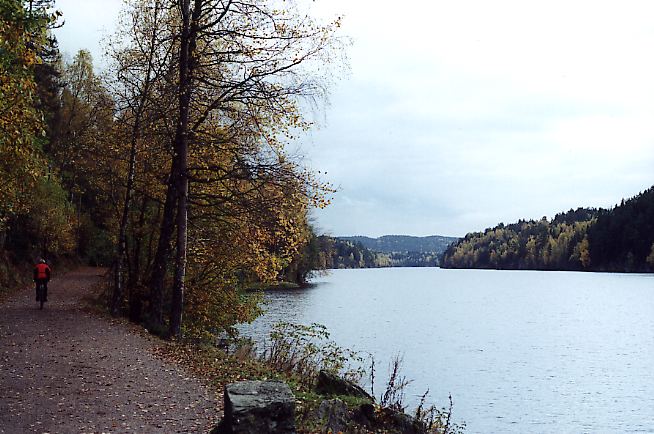 Slik ser Nøklevann ut i høsttåke, sett fra Lutdalen.