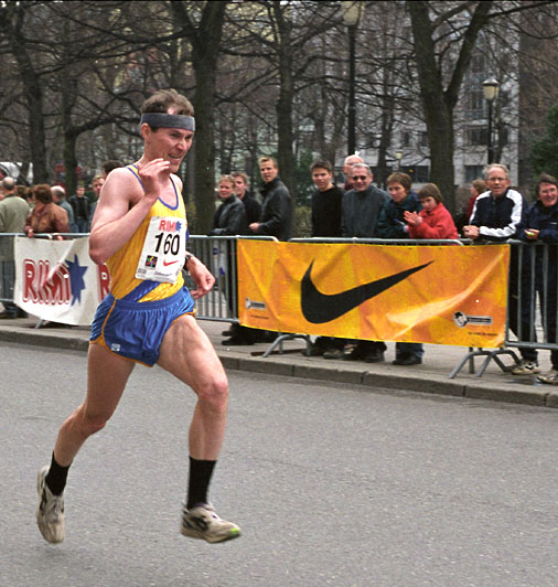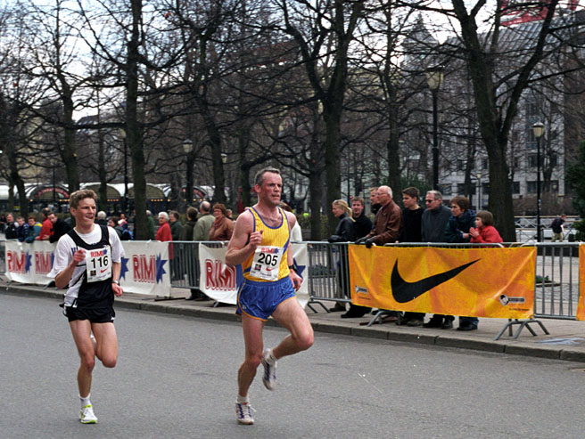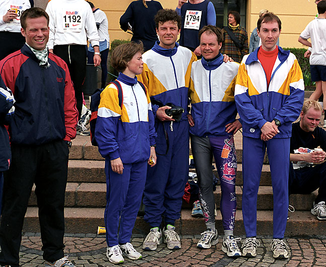 De fleste av Bølers løpere i Sentrumsløpet 2000. Fra venstre i Bøler-drakt: Hilde Henriksen, Trond Olav Berg, Jan Erik Moe, Hermann Bruun. Helt til venstre ser vi at Bent Inglingstad ser mellomfornøyd ut.