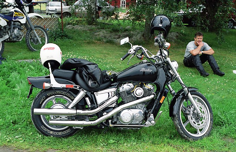 motorsyklist på plenen