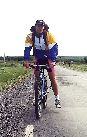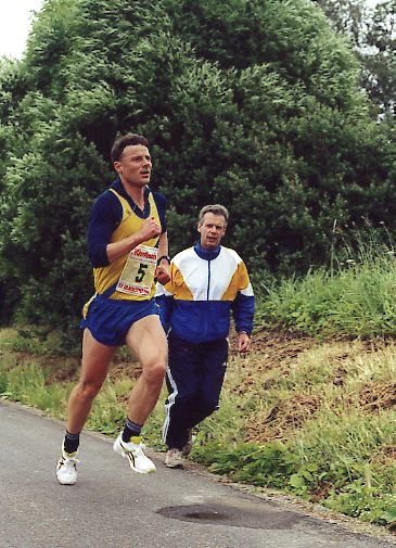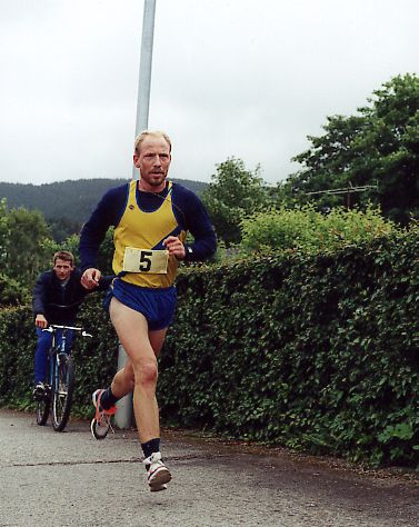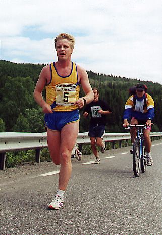 Trond Hval, den tidligere eminente syklist, var den ene av de to som fulgte løperne pr. sykkel med oppmuntrende tilrop. Herr Hval, som de senere år dessverre ikke har tilhørt de mest aktive syklister, følte seg etter eget utsagn noe redusert etter å ha sittet på sykkelen i et hundretalls kilometer.