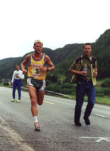 Lars Granum er orienteringsløper. Om dette var årsaken til at han ble satt opp på den antakelig mest utpregede fjelletappen vites ikke, men etter underlaget å dømme kan det vel her være snakk om en feilvurdering: Lars løper jo på en strak og flat vei, mens han burde løpt oppover fjellsidene i uveisomt terreng.