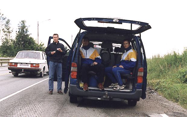 Bilen vi kjørte, lagleder og langdistansetrener Jan Erik Moe, overoppheting på siste etappe