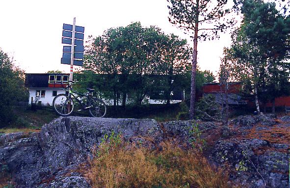 En septemberkveld klokken halv åtte hersket denne stemningen her. Bildet er tatt øst for Vangen, altså fra siden som vender mot Mosjøen. Legg merke til det blå kveldslyset som allerede har begynt å gjøre seg gjeldende mens vi ennå kan se rødskjæret fra aftensolens siste stråler på vesthimmelen. En fin og særpreget stemning, ikke sant? Støttet opp mot veiviserskiltene står Bølersideredaktørens "jernhest," som en påminnelse om hvilket fremkomstmiddel som med hell kan brukes for å komme hit og oppleve dette.